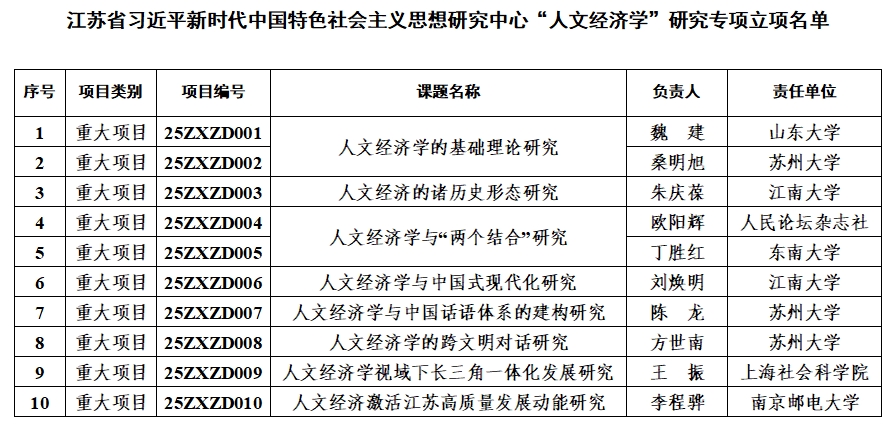 “人文经济学”研究专项已完成申报受理、专家评审、网上公示等程序,现将立项名单予以公布(见附件)。