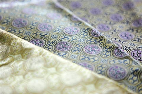 宋锦的高冷,不仅以上所述,更体现于其织造手法的复杂多变以及用材上的奢侈——宋锦上所有的图案与花色都是通过经纬线的排布逐行织出,除了桑蚕丝之外,还常常需要用到由金箔捶打而成的金线——传统宋锦高昂的制作成本决定了它无法具备市场普及性。