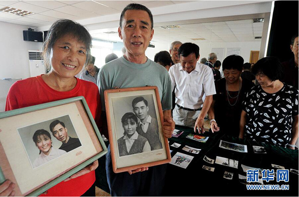 当日,江苏苏州工业园区东方社区举行“晒甜蜜·享幸福”迎七夕主题活动,社区里的8对老年夫妇“晒”出年轻时各自的恋爱照、结婚照以及现在补拍的婚纱照等,在回味甜蜜幸福爱情的同时,迎接七夕节的到来。(杭兴微 摄)